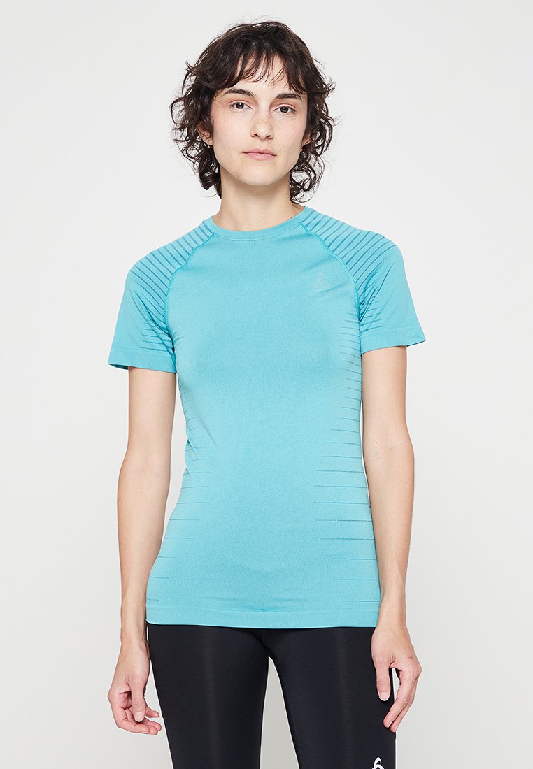 Stay cool and stylish this Spring/Summer season with the Odlo Women's Casual T-Shirt in a refreshing shade of Blue. This soft and comfortable tee features a unique print to add a touch of fun to your everyday look. Perfect for pairing with your favorite jeans or shorts for a casual yet chic ensemble. Upgrade your wardrobe with this must-have T-shirt.