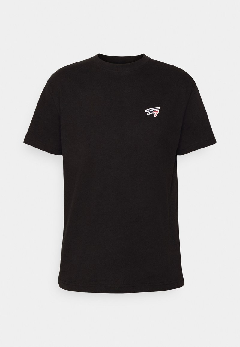 Stay effortlessly chic in this Tommy Jeans casual style T-shirt for women. Perfect for the warmer seasons, this black tee is a versatile addition to your wardrobe. Featuring a stylish print, this shirt is both comfortable and on-trend. Pair with your favorite jeans or shorts for a classic, relaxed look.