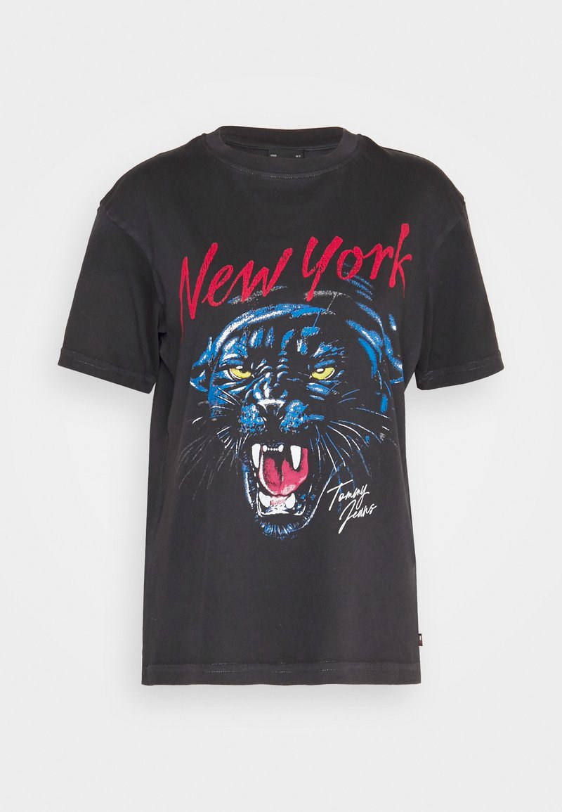 Stay effortlessly chic in this Tommy Jeans casual style T-shirt for women. Perfect for the warmer seasons, this black tee is a versatile addition to your wardrobe. Featuring a stylish print, this shirt is both comfortable and on-trend. Pair with your favorite jeans or shorts for a classic, relaxed look.