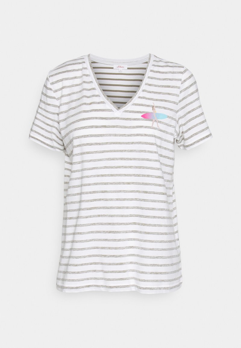 Get ready for the warmer seasons with this stylish beige T-shirt from s.Oliver. Perfect for a casual look, this shirt features a trendy print and is ideal for spring and summer. Made for women of style, this T-shirt is a must-have addition to your wardrobe. Stay comfortable and chic all season long with this versatile piece.