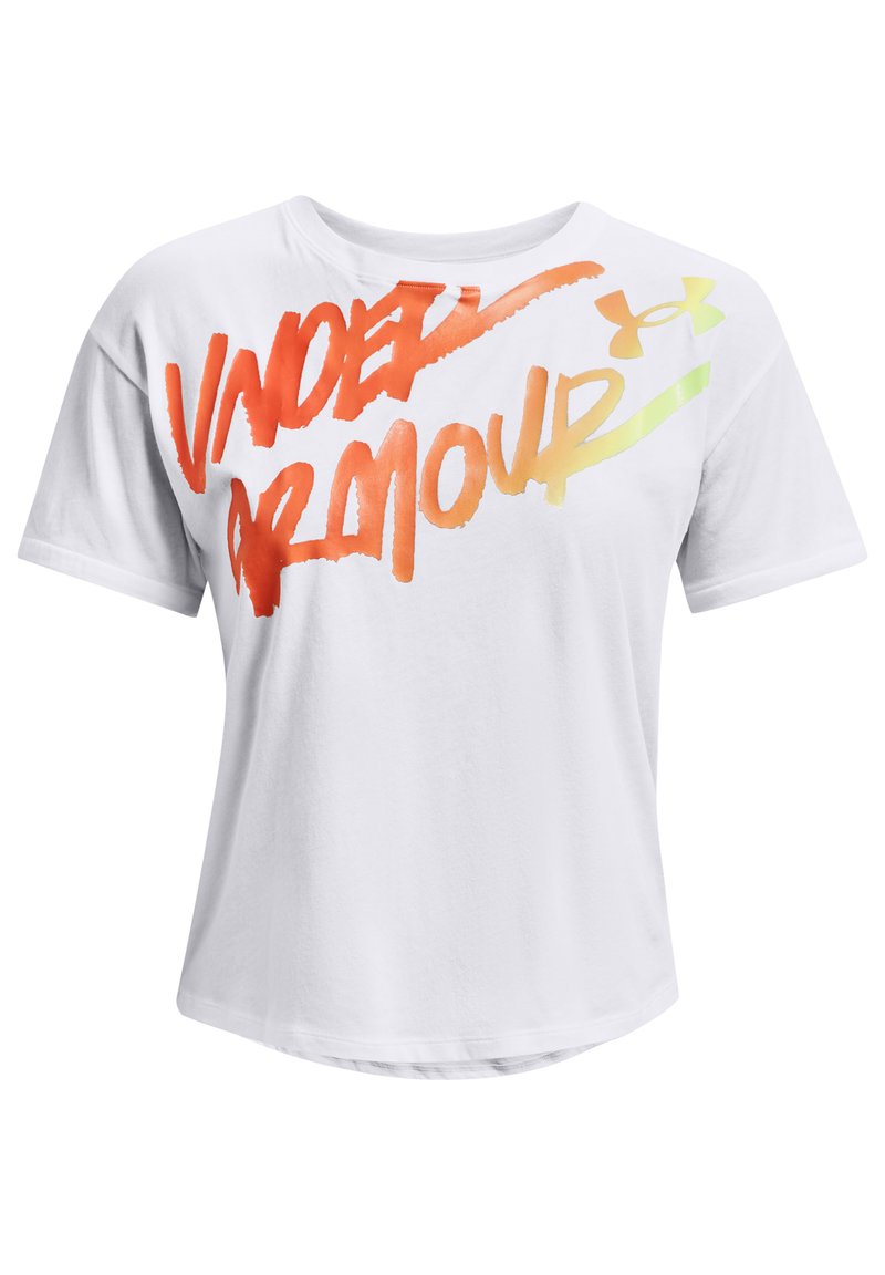 Stay cool and comfortable in the Women's Casual T-Shirt from Under Armour. This sleek white tee is perfect for the warmer months, with its relaxed fit and stylish design. Made from high-quality materials, this shirt is ideal for any casual outing or workout. Elevate your Spring/Summer wardrobe with this must-have piece from Under Armour.