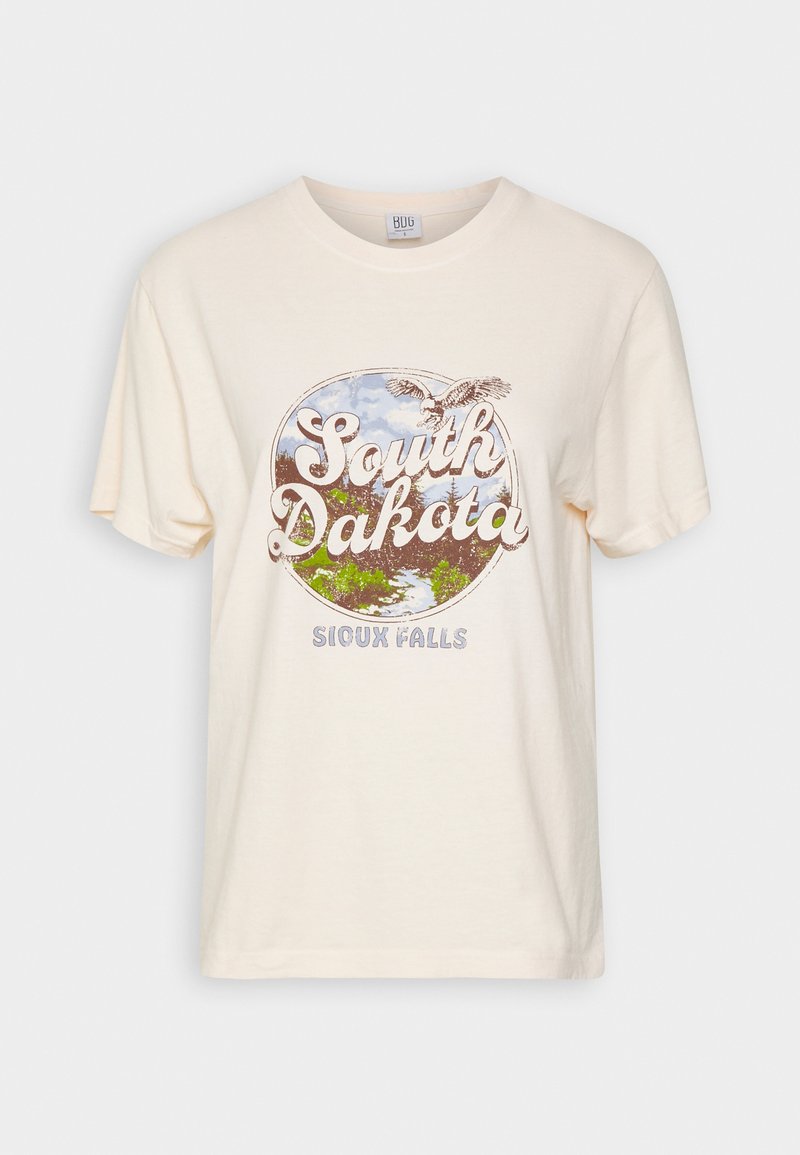 Stay effortlessly chic in this BDG Urban Outfitters Casual T-shirt for Women. Perfect for Spring/Summer, this beige tee features a stylish print. Bring a touch of laid-back sophistication to your wardrobe with this must-have piece.