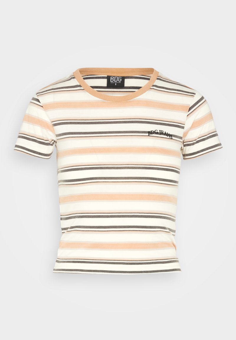 Stay effortlessly chic in this BDG Urban Outfitters Casual T-shirt for Women. Perfect for Spring/Summer, this beige tee features a stylish print. Bring a touch of laid-back sophistication to your wardrobe with this must-have piece.
