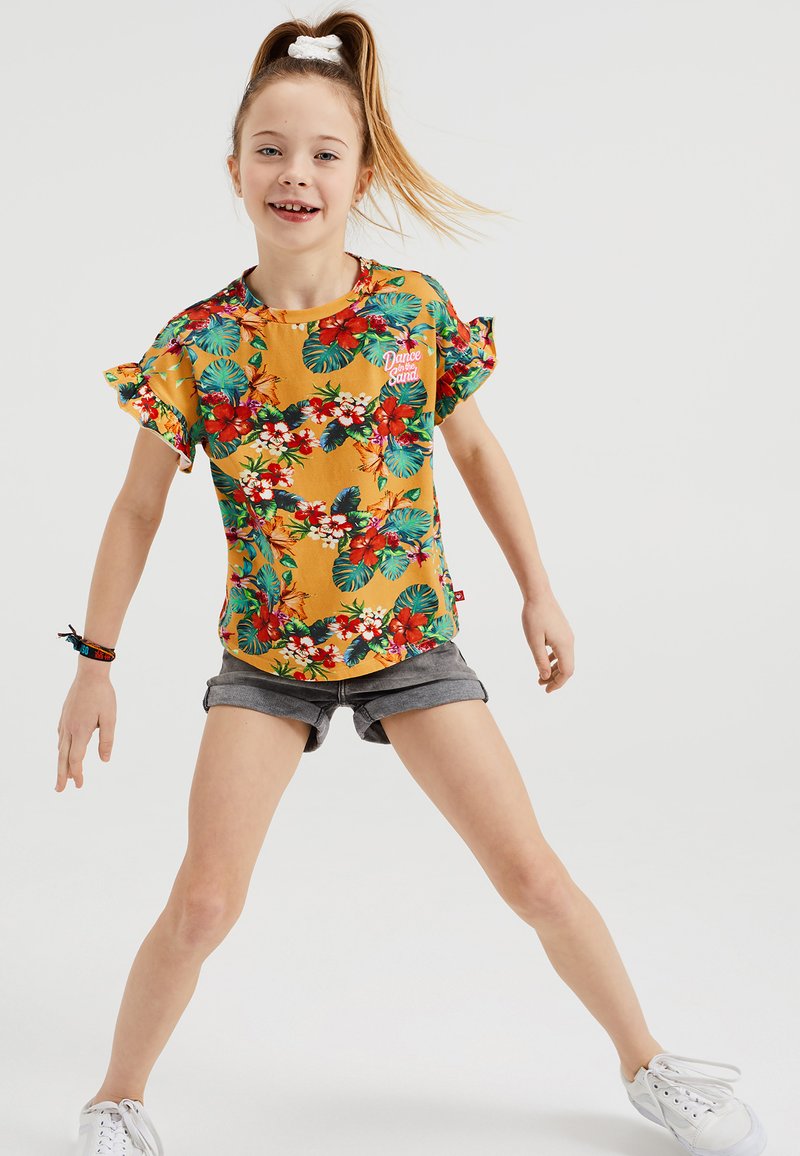 Stay effortlessly stylish this Spring/Summer with the WE Fashion Casual T-shirt for Women in sunny Yellow. Featuring a trendy print, this relaxed tee is perfect for any casual outing. Made from comfortable fabric, it will keep you feeling cool and chic all day long. Add a pop of color to your wardrobe with this must-have T-shirt.