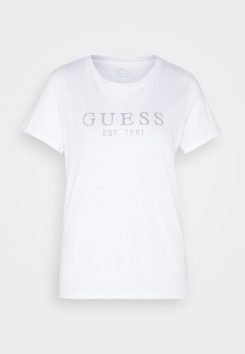 Stay stylish and comfortable in this casual Guess T-shirt for Women, perfect for the Spring/Summer season. The crisp white color adds a fresh touch to any outfit, while the trendy print adds a fun flair. Made from high-quality materials, this t-shirt is a must-have for your wardrobe. Add a touch of chic to your everyday look with this t-shirt con stampa from Guess.