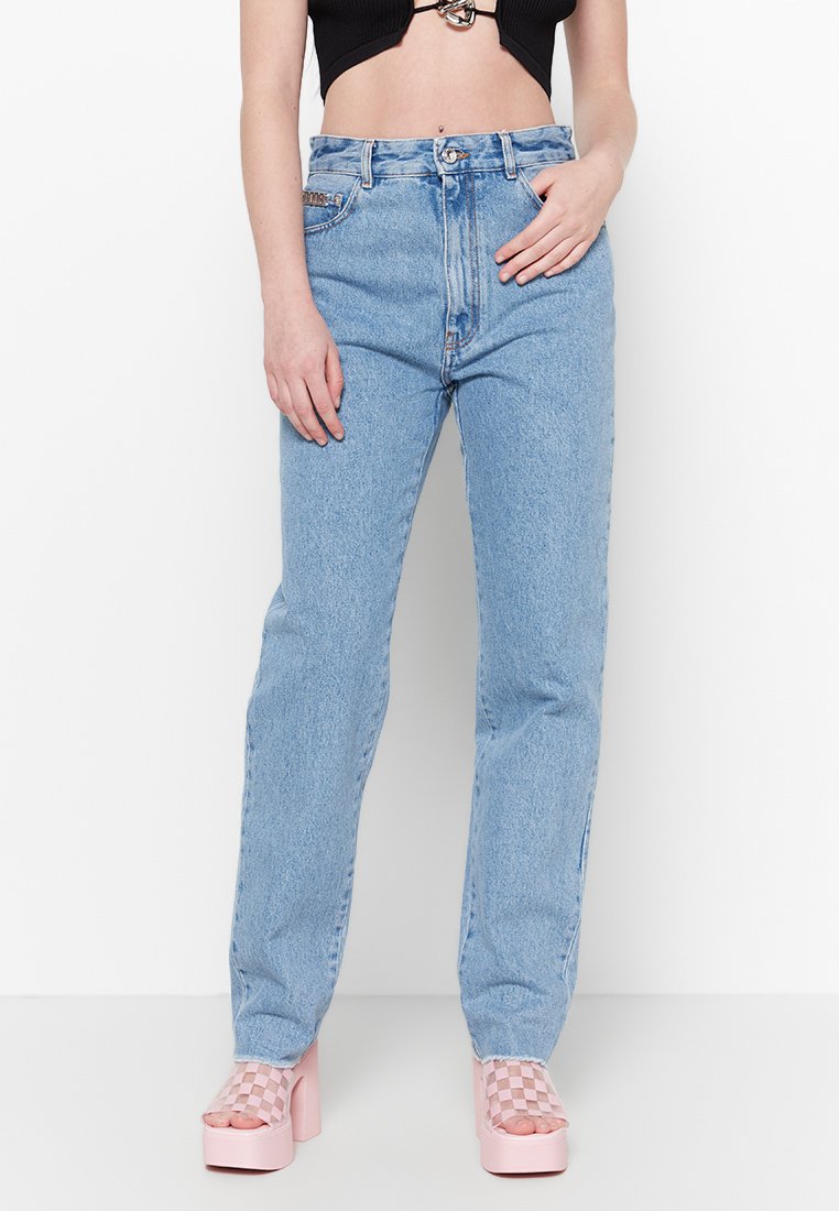 Stay cozy and chic this Autumn/Winter season with the GCDS Casual Tapered Fit Jeans in a timeless Blue hue. These stylish pants for women feature a relaxed silhouette that is perfect for everyday wear. Pair them with a chunky knit sweater and ankle boots for a trendy cold-weather look. Upgrade your wardrobe with these versatile and fashionable jeans.
