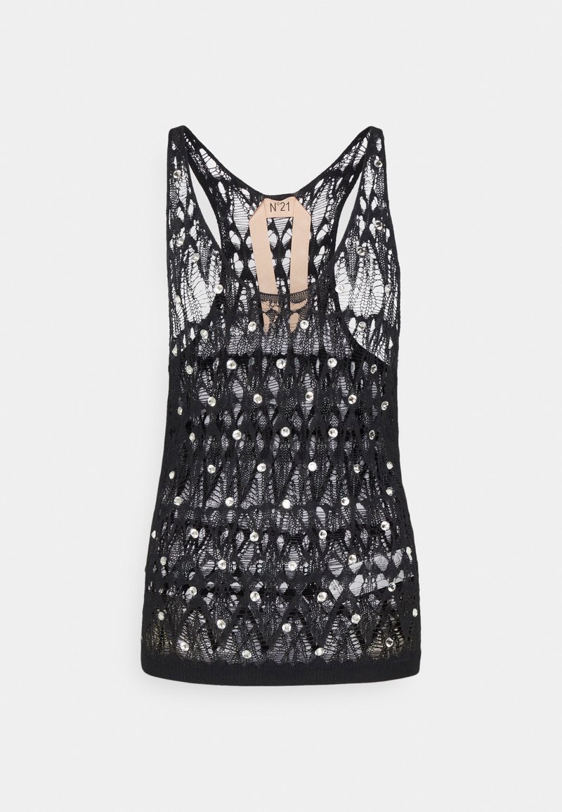 Elevate your casual look with the N°21 women's top in sleek black. Perfect for the Spring/Summer season, this versatile piece features a relaxed fit and stylish design. Pair it with your favorite jeans or skirt for a chic and effortless outfit. Stay comfortable and fashionable all season long with this must-have wardrobe staple.