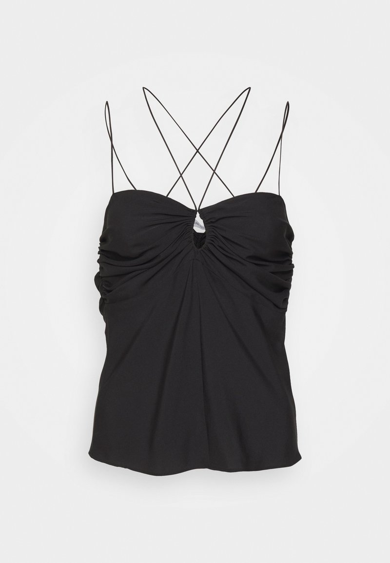 Elevate your casual wardrobe with this chic black top from DESIGNERS REMIX. Perfect for the Spring/Summer season, this stylish top boasts a relaxed fit and a versatile design. Pair it with your favorite denim or skirts for a timeless and effortless look. Upgrade your fashion game with this must-have piece for any fashion-forward woman.