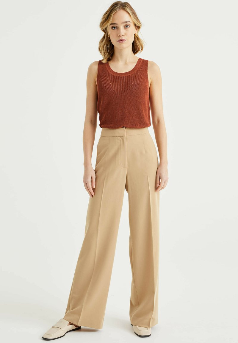 Stay cool and chic in this Casual Women's Top from WE Fashion. Perfect for Spring and Summer, this stylish brown top is versatile and can be dressed up or down for any occasion. Made with high-quality materials, this top is a must-have addition to your warm-weather wardrobe. Upgrade your style effortlessly with this trendy Top from WE Fashion.