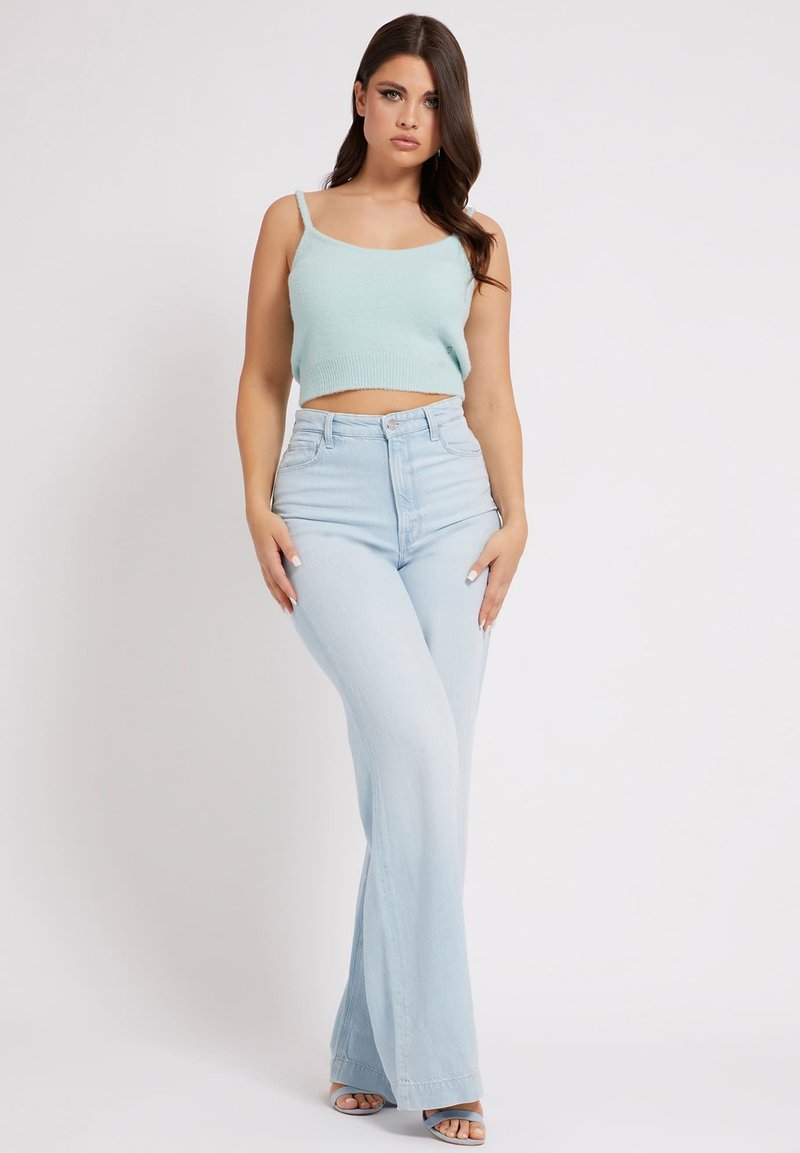 Stay cool and chic in this Guess Women's Casual Top in a refreshing shade of blue. Perfect for the Spring/Summer season, this stylish top features a relaxed fit and subtle logo detailing. Pair with your favorite jeans or shorts for a laid-back yet fashionable look. Upgrade your wardrobe with this versatile and on-trend top from Guess.