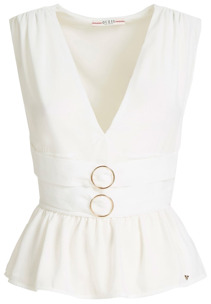 Stay effortlessly chic in this white casual top from Guess, perfect for the Spring/Summer season. This versatile piece features a relaxed fit and a stylish design, making it a must-have for any wardrobe. Pair it with your favorite jeans or shorts for a laid-back, yet fashionable look. Elevate your outfit with this Guess top that is sure to turn heads.
