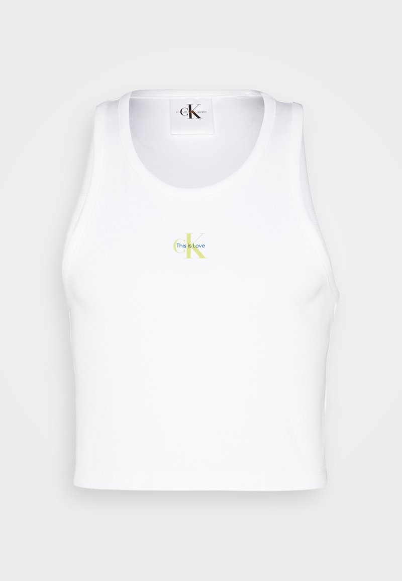 Stay cool and comfortable this Spring/Summer with the Calvin Klein Jeans Casual Top for Women in a crisp White color. This versatile top is perfect for a relaxed, chic look and pairs effortlessly with your favorite jeans or shorts. Embrace a laid-back vibe with this stylish top that features the iconic Calvin Klein logo on the front. Elevate your casual wardrobe with this timeless piece from Calvin Klein Jeans.
