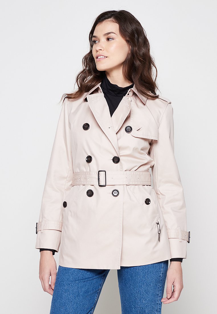 Stay stylish and chic this Spring/Summer season with this Casual/Elegant pink trench coat from Coach. Perfect for any occasion, this timeless piece will elevate your look effortlessly. Crafted with high-quality materials and attention to detail, this coat is a must-have addition to your wardrobe. Embrace the warmth and elegance of this Coach trench coat and make a fashion statement wherever you go.
