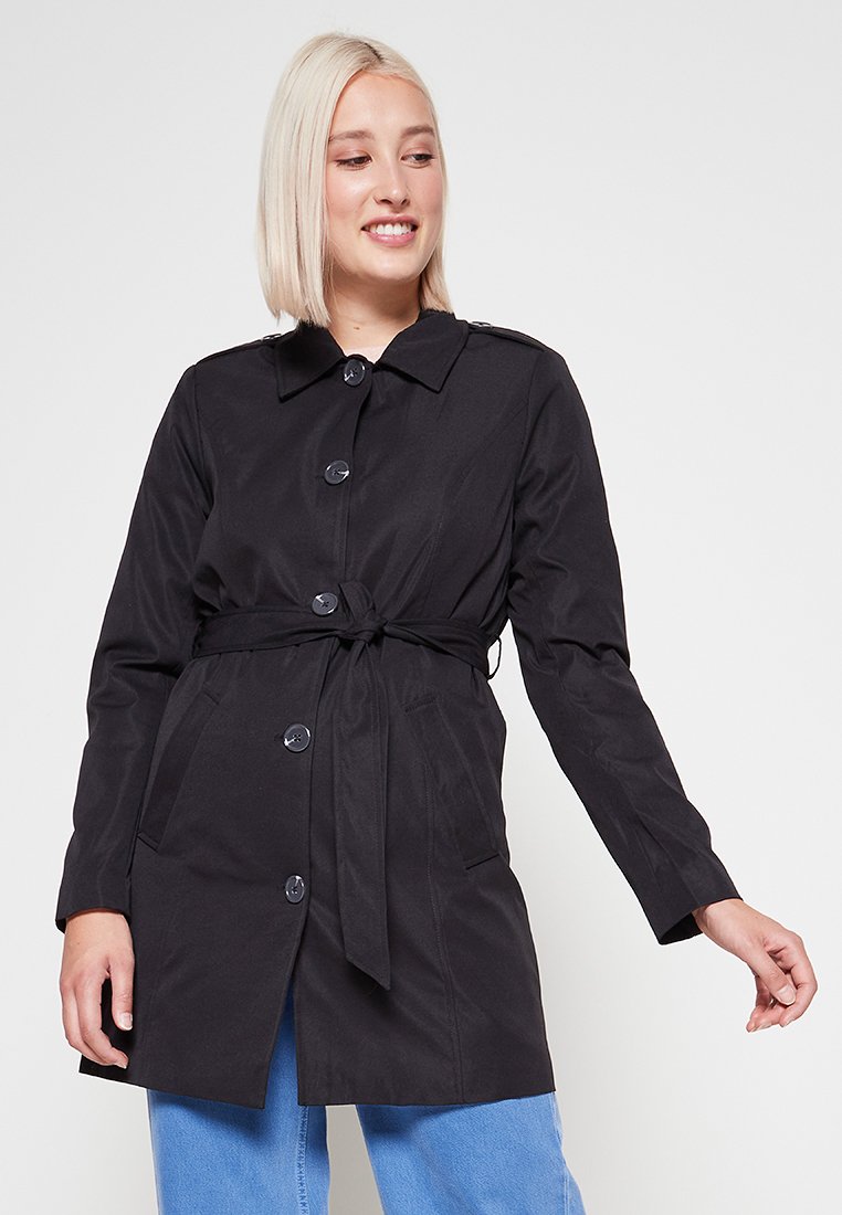 Stay effortlessly chic in this sleek black trench from Only. Perfect for the spring/summer season, this casual yet elegant piece is versatile for any occasion. With a lightweight fabric and a flattering silhouette, this trench is a must-have for the modern woman's wardrobe. Upgrade your style with this timeless and classy essential.