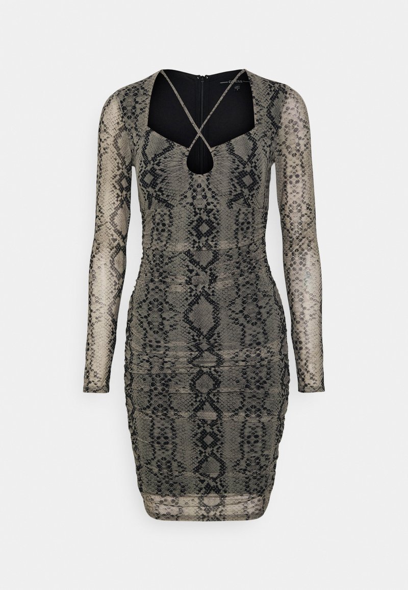 Stay chic and sophisticated in this Guess beige dress for the warmer months. Perfect for both casual outings and special events, this casual yet elegant dress is a must-have for your spring/summer wardrobe. The simple silhouette and neutral color make it easy to accessorize and style for any occasion. Elevate your look with the timeless charm of this Guess dress.