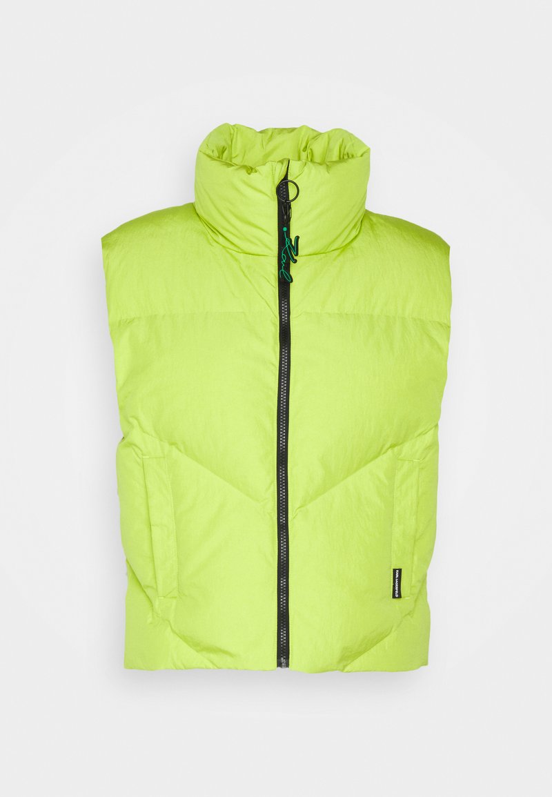 Introducing the Karl Lagerfeld women's sleeveless jacket, perfect for a Casual/Elegant look this Spring/Summer. Made with a flattering silhouette and crafted in a beautiful Green hue, this piece is a must-have for any stylish wardrobe. From brunch dates to evening cocktails, this versatile jacket will elevate any outfit effortlessly. Stay chic and on-trend with this timeless piece from Karl Lagerfeld.