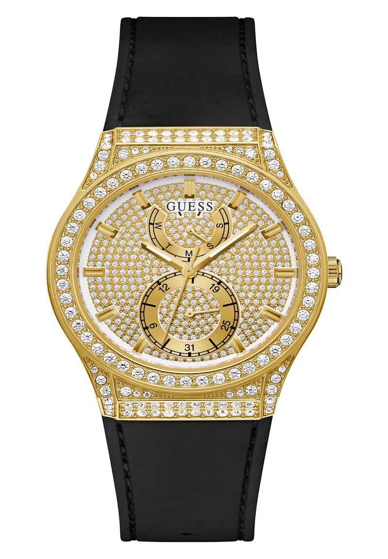 Introducing the Guess Women's Casual/Elegant Black Watch, perfect for the Spring/Summer season. This sleek timepiece combines effortless style with a touch of sophistication. A versatile accessory that can easily elevate any outfit. Stay on-trend and on time with this must-have accessory.