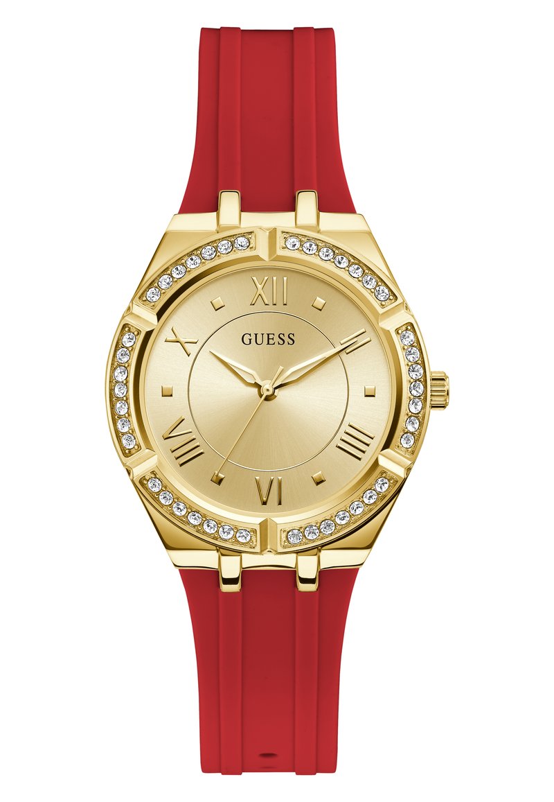 Introducing the Guess Women's Casual/Elegant watch in a vibrant Red shade, perfect for the Spring/Summer season. This timepiece effortlessly combines style and sophistication, making it a versatile accessory for any outfit. Stay chic and on-trend with this sleek design from Guess. Ideal for adding a pop of color to your look.