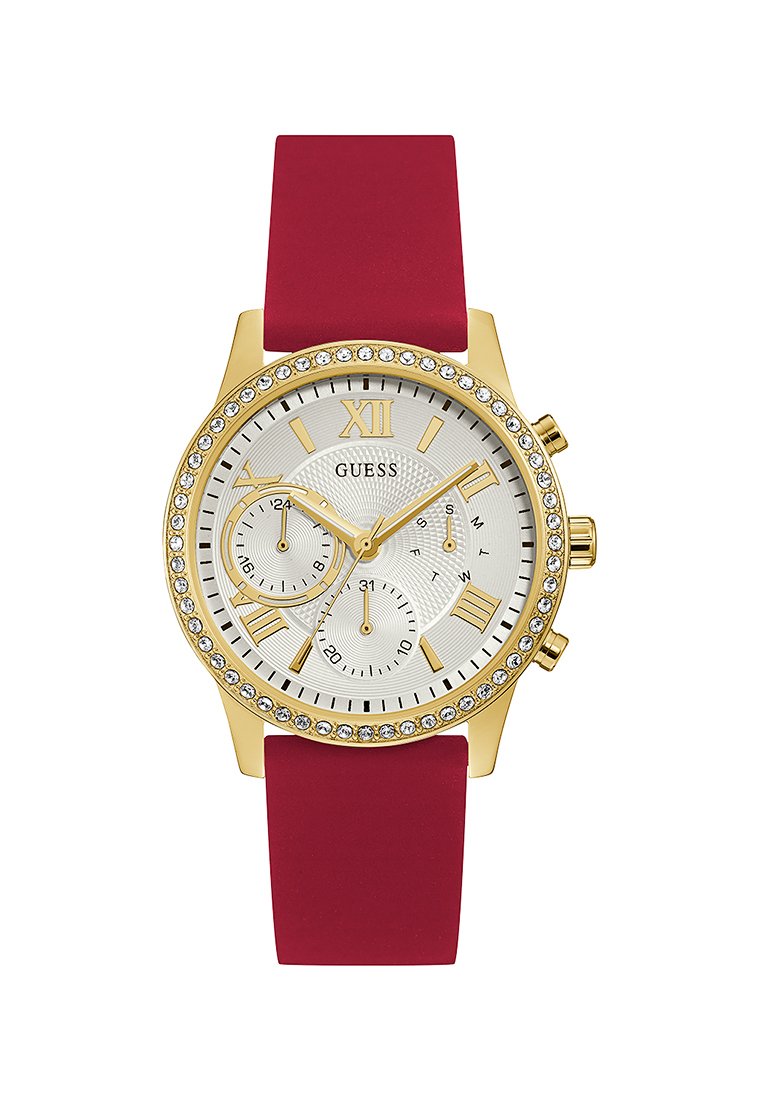 Introducing the Guess Women's Casual/Elegant watch in a vibrant Red shade, perfect for the Spring/Summer season. This timepiece effortlessly combines style and sophistication, making it a versatile accessory for any outfit. Stay chic and on-trend with this sleek design from Guess. Ideal for adding a pop of color to your look.