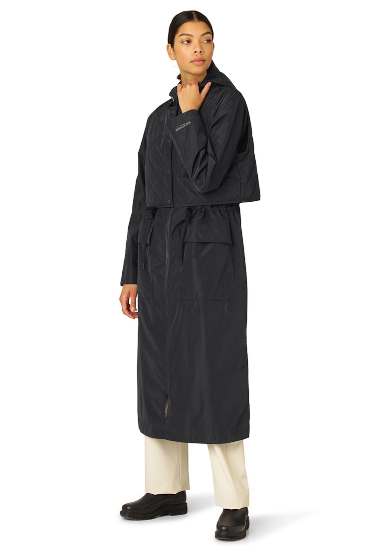 Stay stylish and chic this spring/summer season with the Ilse Jacobsen black waterproof coat. Perfect for both casual and elegant occasions, this versatile piece will keep you dry and fashionable no matter the weather. Made with high-quality materials, this coat is a must-have addition to any woman's wardrobe.Upgrade your outerwear game with this timeless black coat from Ilse Jacobsen.