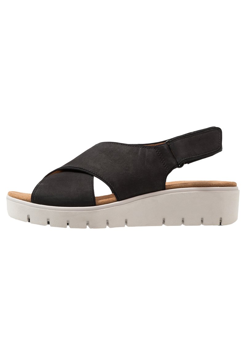 Elevate your casual style this Spring/Summer with the Clarks Unstructured Women's Black Wedge Sandals. These chic and comfortable sandals feature a modern design that is perfect for everyday wear. Step out in confidence with the secure fit and trendy look of these must-have shoes. Upgrade your warm-weather wardrobe with these versatile and stylish Wedge Sandals by Clarks Unstructured.