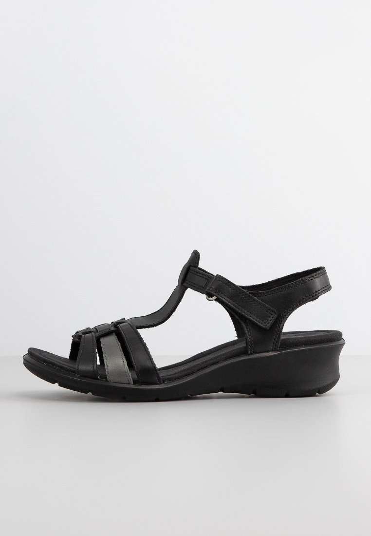 ECCO Women's Casual Shoes in Black are the perfect choice for Spring/Summer. These stylish sandals with a wedge heel provide comfort and support all day long. The sleek black color easily pairs with any outfit, making them a versatile choice for any occasion. Elevate your warm-weather wardrobe with these fashionable ECCO sandals.