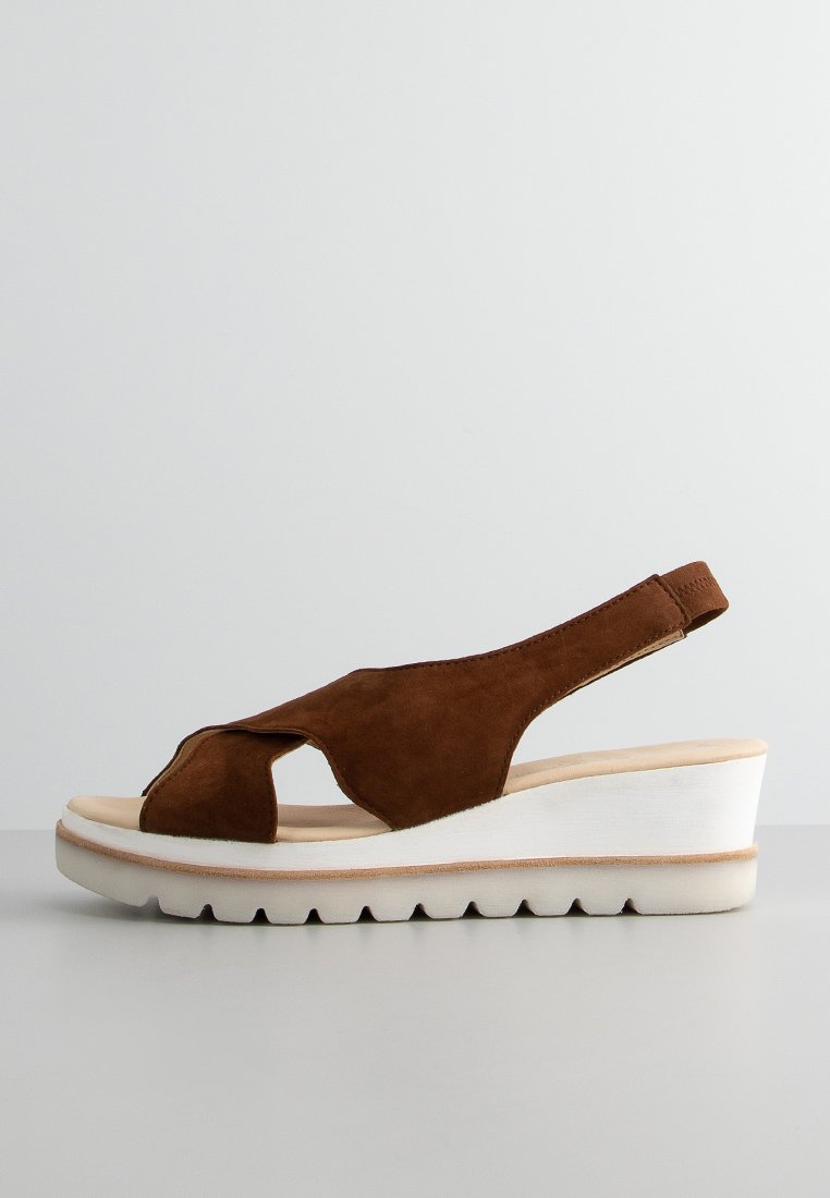 Elevate your casual spring/summer looks with these Gabor Women's Brown Wedge Sandals. Perfect for everyday wear, these comfortable and stylish sandals feature a sleek brown color that pairs effortlessly with any outfit. Stay on trend and in comfort with these versatile sandals from Gabor.