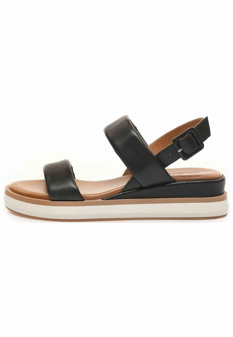 Elevate your casual look this Spring/Summer with the Inuovo Women's Black Wedge Sandals. These stylish shoes feature a comfortable wedge heel and are perfect for everyday wear. Pair them with your favorite summer outfits for a chic and on-trend look. Upgrade your shoe game with these versatile and fashionable sandals.