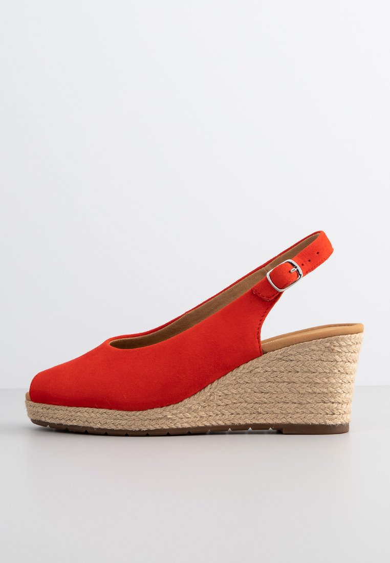 Introducing the Gabor Women's Casual/Elegant Red Wedges - perfect for the Spring/Summer season. These stylish shoes feature a sleek design, comfortable fit, and vibrant red color. Elevate your look with these versatile wedges that effortlessly combine comfort with elegance. The perfect choice for any fashionable woman on the go.