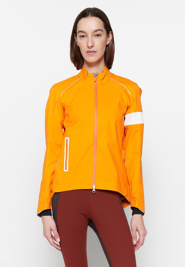 Stay stylish and cozy during the Autumn/Winter season with this casual Women's Jacket from Rapha. In a vibrant orange color, this windproof jacket is perfect for adding a pop of color to your wardrobe. The jacket features a flattering fit and is suitable for daily wear or outdoor activities. Stay warm and on-trend with this Rapha Women's Windproof Jacket.