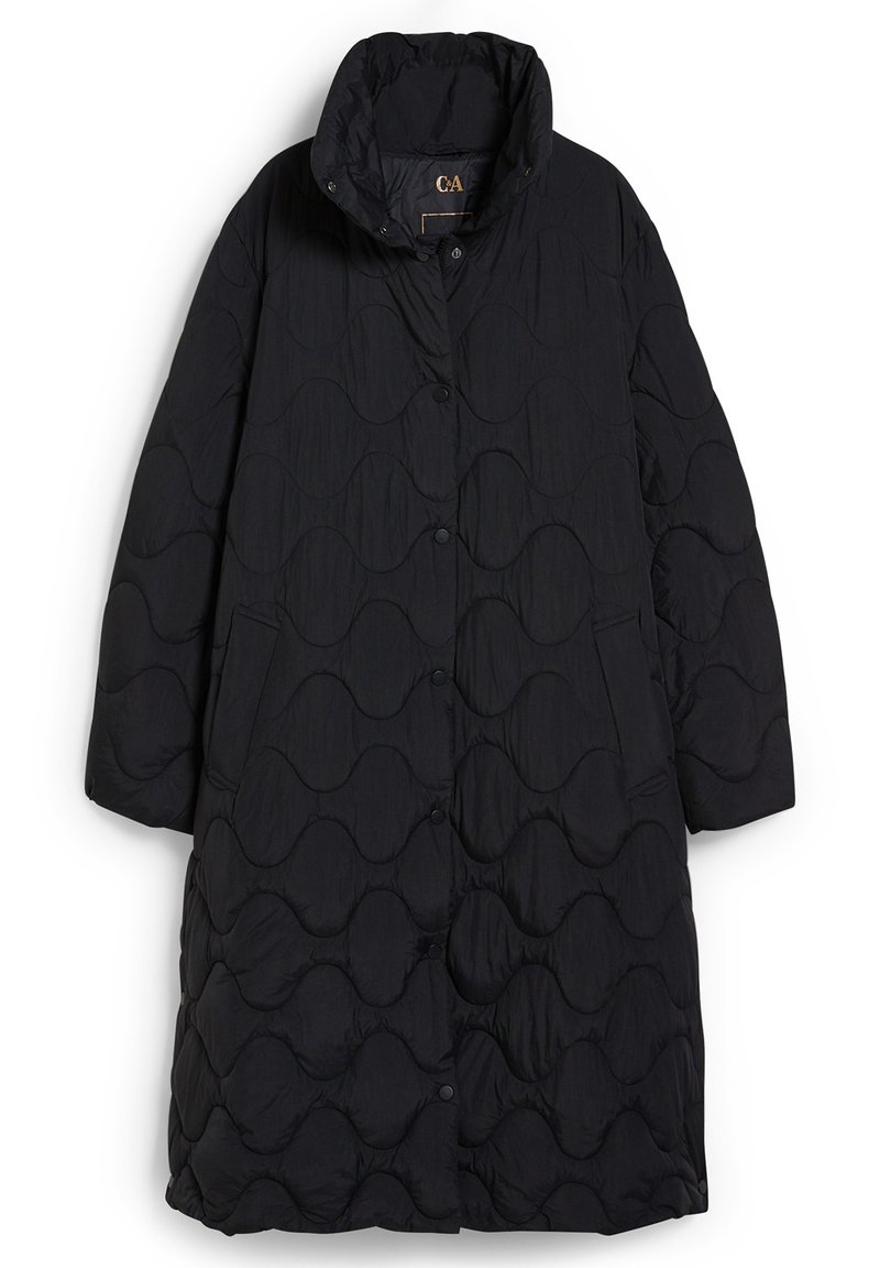 Stay stylish and warm this Autumn/Winter season with the Casual/Elegant black Coat for Women from C&A. Perfect for both everyday wear and special occasions, this coat is a versatile addition to your wardrobe. Featuring a flattering silhouette and high-quality material, the cappotto invernale is a must-have piece for the cold weather. Upgrade your outerwear collection with this chic and timeless coat.