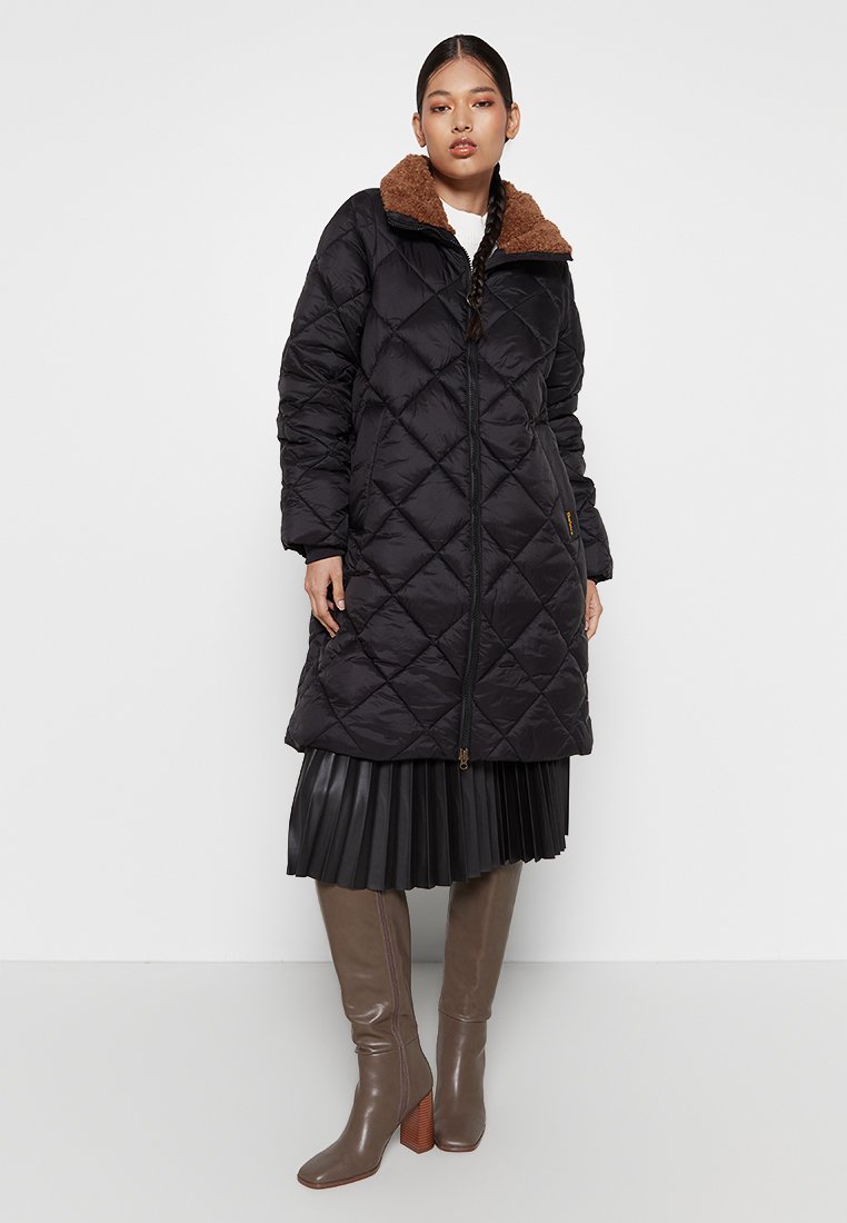 Stay stylish and cozy this Autumn/Winter season with the Barbour Women's Casual/Elegant Coat in classic black. The perfect blend of sophistication and comfort, this winter essential is ideal for any occasion. Crafted with high-quality materials, this cappotto invernale features a timeless design that will elevate any outfit. Make a statement with Barbour's elegant coat for women.