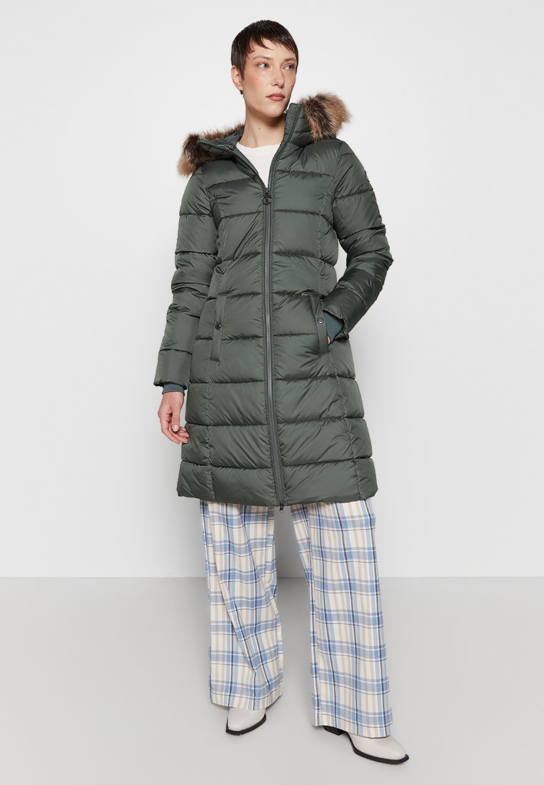 Stay cozy and chic this Autumn/Winter season with the Barbour Green Casual/Elegant Women's Coat. Perfect for any occasion, this timeless piece features a stylish design and a flattering fit. Made from high-quality materials, this cappotto invernale is a must-have for your cold weather wardrobe. Upgrade your look with this versatile and sophisticated coat.