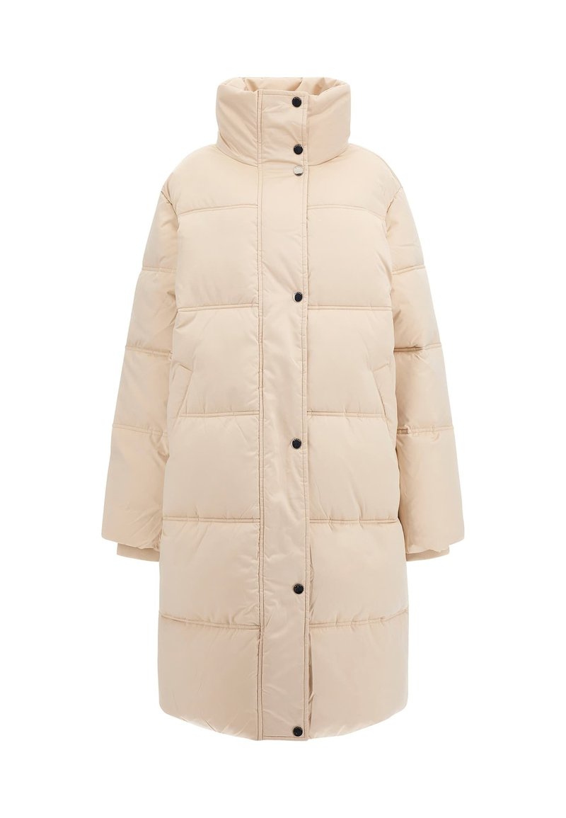 Stay cozy and chic with the Guess Beige Winter Coat for women. Perfect for the Autumn/Winter season, this Casual/Elegant piece will elevate any outfit. The timeless beige color adds a touch of sophistication, making it a versatile addition to your wardrobe. Stay warm and stylish all season long with this must-have cappotto invernale.