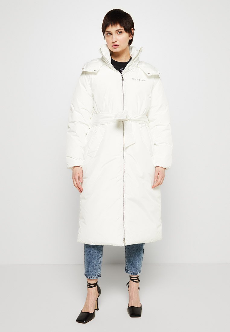 Stay chic and cozy in the Karl Lagerfeld Women's White Winter Coat. This versatile piece seamlessly transitions from casual to elegant, making it a must-have for your Autumn/Winter wardrobe. The sleek white color adds a touch of sophistication to any outfit, while keeping you warm during the colder months. Elevate your style with this stunning coat from Karl Lagerfeld.