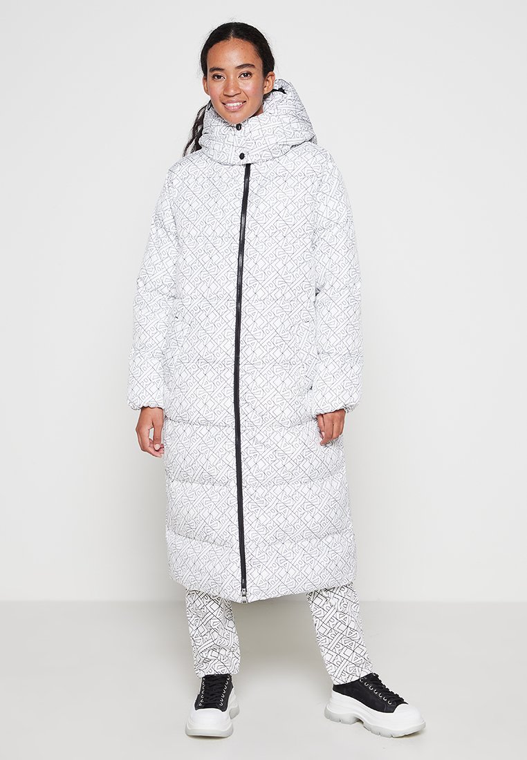 Stay chic and cozy in the Karl Lagerfeld Women's White Winter Coat. This versatile piece seamlessly transitions from casual to elegant, making it a must-have for your Autumn/Winter wardrobe. The sleek white color adds a touch of sophistication to any outfit, while keeping you warm during the colder months. Elevate your style with this stunning coat from Karl Lagerfeld.