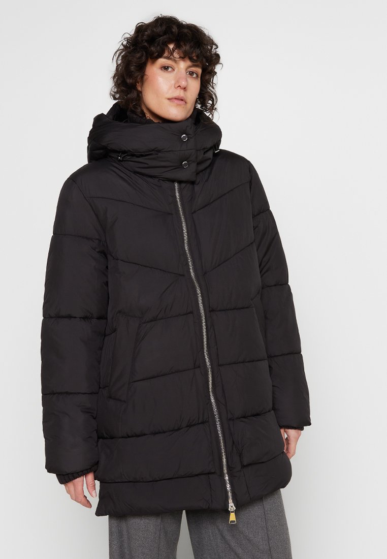 Stay stylish and cozy this Autumn/Winter season with the s.Oliver Black Coat for Women. This Casual/Elegant piece is perfect for completing your cold-weather looks. Featuring a classic black hue, this cappotto invernale is a versatile and chic addition to any wardrobe. Upgrade your outerwear collection with this timeless and fashionable piece from s.Oliver.