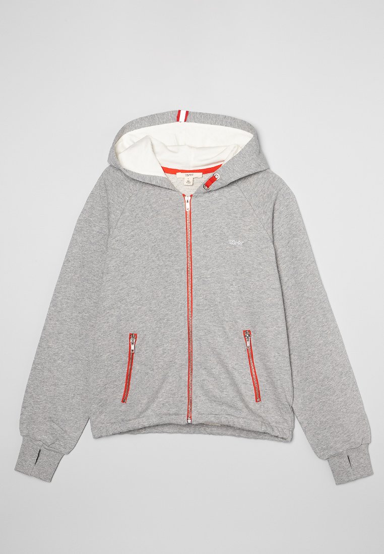 Stay cozy and stylish this Autumn/Winter season with the Casual Grey Women's Hoodie from Esprit. This zip-up hoodie is perfect for those chilly days, featuring a relaxed fit and a versatile grey color. Whether you're running errands or lounging at home, this Esprit hoodie will keep you looking effortlessly chic. Elevate your casual wardrobe with this must-have felpa con zip.