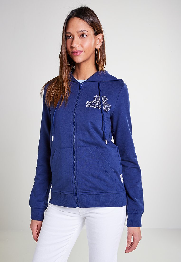 Stay cozy and stylish this season with the Love Moschino Casual Hoodie for Women. In a vibrant Blue color, this zip-up hoodie is perfect for Autumn/Winter weather. Made for comfort and fashion, this felpa con zip is a must-have addition to your wardrobe. Upgrade your casual look with this trendy Love Moschino hoodie.